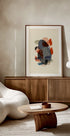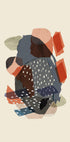 Earthen Array av cartissi er en moderne, abstrakt kollasj med organiske geometriske former. Lag på lag av buer, sirkler og blokker i teal, terrakotta, sand og krem møtes i en balansert komposisjon. Subtile prikk- og stippelteksturer gir taktil dybde, med arkitektoniske referanser og et rolig, sofistikert preg.
