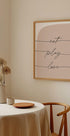 Minimalistisk typografiplakat med ordene «Eat Play Love» i myk kalligrafi på varm, beige bakgrunn. Et rolig og moderne uttrykk som passer kjøkken, stue og hjemmekontor. Skaper en lun nordisk stemning og minner om matglede, lekenhet og kjærlighet – perfekt alene eller i en gallerivegg. Gir et tidløst, skandinavisk uttrykk.