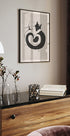To elegante kattsilhuetter slynger seg sammen i perfekt yin-yang, der svart og hvitt møtes i harmonisk symmetri. Motivet utstråler ro, varme og romantikk, ideelt for stue, soverom eller hjemmekontor. Skapt av Emel Tunaboylu i en tidløs, minimalistisk stil som passer moderne interiør. Perfekt gave for katteelskere.