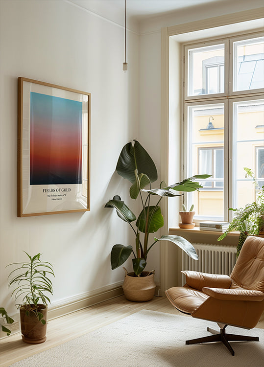 Solstrømmende enger badet i gyllent kveldslys brer seg mot horisonten i denne stemningsrike landskapsstudien fra Mallorca. Myke gradienter og lange skygger fanger solvervets stille magi, mens varme toner fra åkre og åser gir rommet ro. Fields of Gold av Merel Takken hyller Middelhavets lys. Et rolig blikk som leder tankene mot sommerens evige kveld.