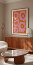 Floral Frenzy av Miho Art Studio er en leken, grafisk blomsterkomposisjon med dristige, retrofargede former i oransje, rosa og grønt. Inspirert av Matisse-aktige utskjæringer møter 70-talls nostalgi et moderne, minimalistisk uttrykk. Livlig energi som løfter stue, kontor eller galleri. Perfekt for deg som elsker botaniske, tropiske vibber.