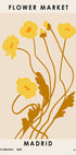 En fargerik og grafisk plakat inspirert av blomsterbodene i Madrid. Store, lekne bokstaver rammer inn frodige florale former i klare, solmette toner som gir rommet energi og varme. Motivet fanger pulsen fra spanske markedsgater – livlig, frisk og optimistisk – perfekt til stue, kjøkken eller hjemmekontor.