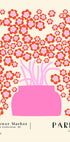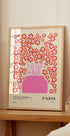 En leken blomsterplakat med en kraftig rosa vase fylt med stiliserte røde og rosa blomster. Dette moderne, grafiske kunstverket gir en pop-art vri på den parisiske blomstersjarmen.