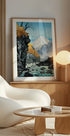 Ved foten av Mount Ashitaka åpenbarer Hiroaki Takahashi (1932) et rolig vinterlandskap i tradisjonell japansk trestikk. Snødekte fjellformer stiger mot en klar, blå himmel, mens mørke trær rammer inn utsikten. En poetisk, tidløs scene som fanger naturens stillhet og japansk estetikk. Et vintage-landskap som inviterer til kontemplasjon og ro.