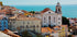 En solfylt hyllest til Lisboa: et taklandskap av terrakotta og pasteller der kirketårn stiger over trange gater, med blå himmel og glimt av havet i horisonten. Varmen fra kystlyset gir en vintage postkortfølelse, full av reiselyst, sommer og historie – et fargerikt blikk over byens sjarm. Med middelhavsstemning, ro og eventyr i hver detalj.
