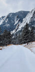 Fang vinterens stille kraft med Frozen Flatiron – et stemningsfullt blikk mot Boulders ikoniske Flatirons ved Chautauqua Park. Tunge skyer, rimdekte furuer og en snødekt sti leder inn i villmarkens ro. Et fotografi av Del Mundo Imagery som gir rom for stillhet, dybde og drøm. Perfekt for natur- og fjellentusiaster.