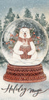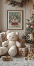 En nostalgisk juleplakat av Olena Kovalova: en varm scene der en liten kanin og en vennlig bjørn samles rundt en glitrende snøkule som fanger reiselyst og vintermagi. Dempede røde, grønne og teal-toner gir et vintage uttrykk, mens frostrøyk og lys skaper ekte vintervarme og høytidsstemning. Perfekt for klassisk julepynt.