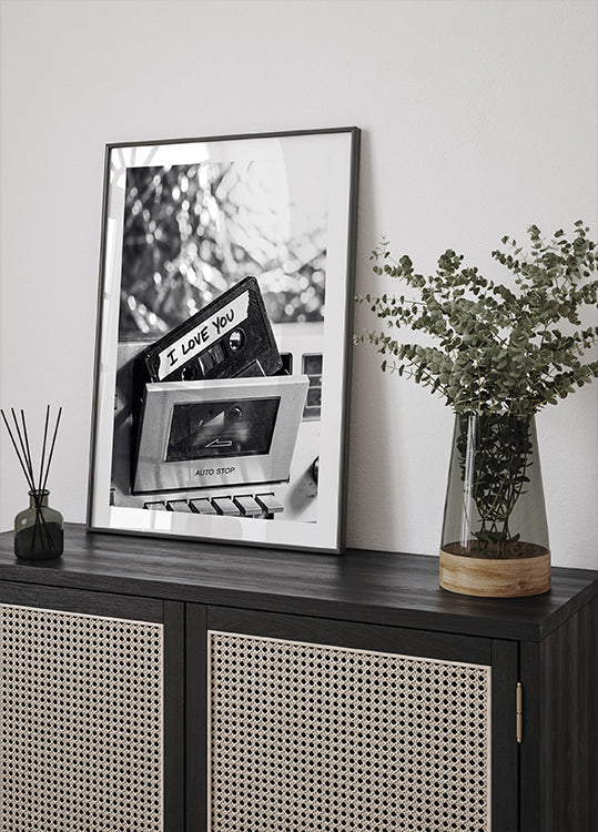 En stilren, monokrom plakat som hyller retrofølelsen: en klassisk kassett i nærbilde, satt mot et rent, grafisk uttrykk som uttrykker kjærlighet uten ord. Perfekt for musikkelskere og romantikere. Skapt av Andreas Magnusson, og gir hjemmet ditt nostalgisk sjarm og moderne edge. Passer i stue, kontor eller soverom.
