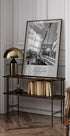 Et stemningsfullt svart-hvitt motiv av den ikoniske Magere Brug over Amstel i Amsterdam. Byens historiske fasader, vannspeil og rolig byliv trer frem i et raffinert, grafisk uttrykk. Broens elegante linjer speiler seg i kanalen, og himmelen danner en rolig bakgrunn. En tidløs hyllest til urban eleganse, fotografert av kunstneren Melanie Viola.