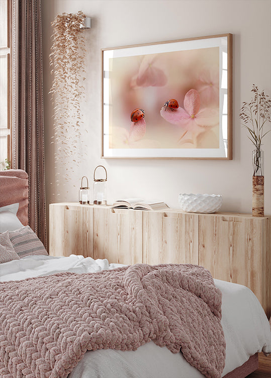 Ladybirds on pink hydrangea. by Ellen van Deelen - Premiumpapir med matt overflate og elegant følelse. Den matte finishen reduserer gjenskinn og gir et raffinert, tidløst utseende. Sterkt og slitesterkt for langvarig bruk, ideelt for både profesjonelle omgivelser og dekorative utstillinger.
