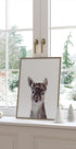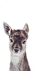 Et nordisk høylys-portrett av en liten rådyrkalv mot snøhvit bakgrunn. Den myke, brune pelsen og det nysgjerrige blikket skaper ro og vintermagi. Minimalistisk og varmt uttrykk som passer barnerom, hytte og moderne stue. Motiv av kunstfotografen Monika Strigel. Perfekt for nordisk cottagecore og naturinteriør; gir et vennlig blikkfang gjennom året.