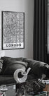 En stilren, monokrom plakat som hyller London gjennom et grafisk kartmotiv bygget av bokstaver og ord. Byens gater og områder trer frem i et ryddig, typografisk mønster med subtil tekstur som gir en retro, urban stemning. Et tidsriktig blikkfang for alle som elsker storbyens puls og britisk karakter og tidløs eleganse.