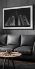Modern giants av Enrique Rodriguez de Mingo fanger Madrids finansdistrikt i dramatisk sort-hvitt. De fem tårnene reiser seg som monolitter mot himmelen, med presise linjer, dypt lys og lange skygger som gir rytme og tyngde. Et urbant statement som gir rommet puls og perspektiv. Perfekt midtpunkt for moderne hjem og kontor.