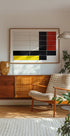 En grafisk hyllest til Mondriaan Tower i Amsterdam: en fasade komponert av stramme linjer og fargesterke felt i sterke primærfarger. Greetje van Son fanger urbant rytme og Bauhaus-ånd, tydelig inspirert av Piet Mondrian, i en geometrisk komposisjon som gir rommet puls og presisjon. Perfekt for moderne interiør.