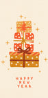 En varm og stemningsfull nyttårsplakat med en stabel gaver illustrert i myke, nostalgiske farger. De gylne og røde tonene, kombinert med små glitrende stjerner rundt pakkene, skaper en festlig og optimistisk atmosfære. Plakaten formidler gleden ved et nytt år og passer perfekt som dekor i hjemmet gjennom hele høytidssesongen.