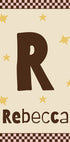 En søt personlig navneplakat for baby med en stor bokstav og valgfritt navn, dekorert med myke stjernedetaljer. Den rosa rutete kanten kombinert med varme nøytrale toner gir et lekent og elegant uttrykk, perfekt for barnerommet. Ideell for bildevegger eller som en fin gave til nyfødte, babyshower eller bursdager.