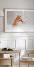 En rødrev står stille i tett snøfall, omfavnet av mykt vinterlys som demper omgivelsene og lar blikket hvile på dyrets våkne uttrykk. Den duse bakgrunnen skaper en drømmende ro, mens fnuggene danser i luften. Fotografert av Denis Budkov i Kamtsjatka – et poetisk øyeblikk av vill natur. Perfekt for å hente vintermagi inn i hjemmet.