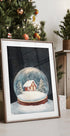 Snow Town Globe er en nostalgisk plakat som fanger magien av vinterkvelder: et lite snødekt bylandskap skjult i en krystallkule, omgitt av virvlende snøfnugg og mørke grantrær. Dype grønntoner og retropreg gir en lun, vintage følelse—perfekt til julestemning og vinterro. Detaljene i husene og snøfallet gir motivet dybde og ro.