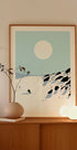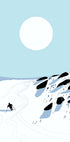 Snowy Mountain Descent av Nicholas fanger øyeblikket når en enslig skiløper skjærer nedover hvite fjellsider under en klar blå himmel. Rene linjer, moderne former og et varmt solpunkt skaper en rolig, grafisk dynamikk. En minimalistisk vinterscene som gir hjemmet ditt frisk energi og stille eventyr.