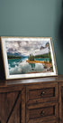 Spirit Island fanger en stille morgen ved et fjellvann: tåke glir lavt over speilblankt vann, grantrærne står som mørke silhuetter, og snødekte topper speiler seg i en gyllen himmel. Et poetisk naturøyeblikk av Sergey Pesterev som gir rom for ro, ettertanke og eventyrlyst på veggen. Perfekt som midtpunkt i stua eller kontoret.