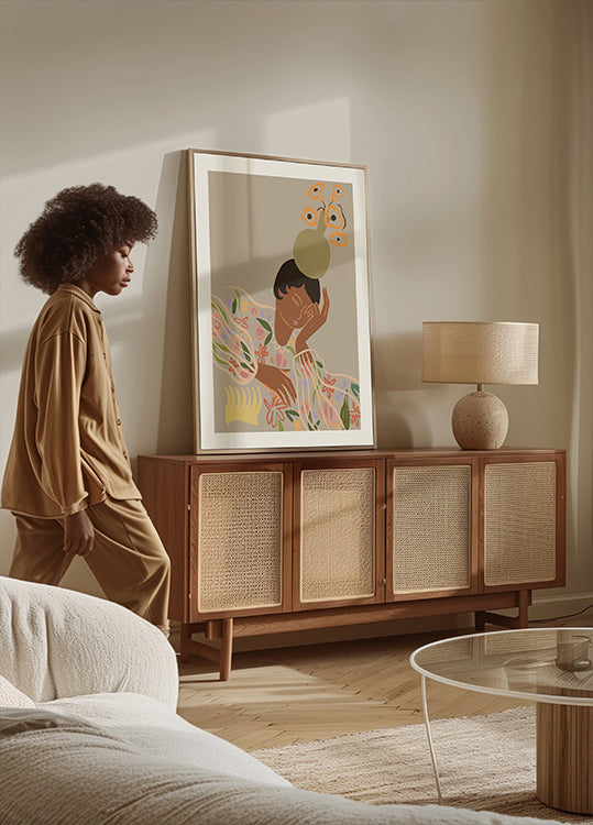 - Trykkes på slitesterkt bomullslerret med naturlig tekstur