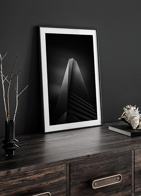 Et dramatisk monokromt blikk mot Madrids himmel: Torre PwC stiger elegant med kurvet glassfasade mens langeksponerte skyer stryker forbi og tegner skarpe linjer og dype kontraster. Fotograf Mohammad Mirza fanger et rolig, kraftfullt øyeblikk av moderne urban arkitektur – minimalistisk, storslått og tidløst.