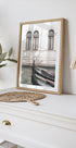 En stemningsfull plakat som fanger Venezia på sitt mest poetiske: elegante gondoler som glir stille gjennom en smal kanal, omgitt av værbitte fasader og skimrende refleksjoner. Varmen fra terrakotta og sjøgrønt skaper en tidløs ro og reiselyst. Et fotografisk blikk av kunstneren Talitha McQueen. En hyllest til kanalbyens evige sjarm.