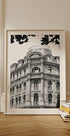 Et imponerende svart-hvitt fotografi av et barokt byhus i Wien, utsmykket med skulpturer, storslåtte søyler og intrikate arkitektoniske detaljer. Dette trykket fanger elegansen og historien i europeisk arkitektur og blir et raffinert innslag i interiører inspirert av kultur, arv og tidløs design.