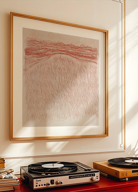 Whispering Textures by Alma drifts between coast and countryside: soft chalky strokes, fine lines, and layered, matte-like washes in beige, burnt reds, and gentle earth tones. A minimal, Japandi spirit evokes calm horizons and retro warmth, letting textured forms and quiet negative space invite slow, soothing reflection.