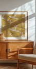 En retroinspirert plakat av Susana Costa: En ensom skikjører skjærer gjennom puddersnø i isblå toner, med skarpe alpintopper som reiser seg i bakgrunnen. Grafiske linjer og sterke kontraster gir mid-century reiseplakat-vibber, og fanger følelsen av fart, frisk fjelluft og tidløs vinternostalgi. Perfekt til hytte og hjem.