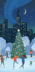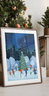 En stemningsfull illustrasjon av Petra Lizde som fanger julemagien i New York: skøyteløpere glir over isen i Central Park mens snøfnugg faller, et strålende juletre lyser opp kvelden, og skyline reiser seg i bakgrunnen. Perfekt for å bringe vinterglede og storbyromantikk inn i hjemmet. Et koselig blikkfang året rundt.