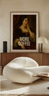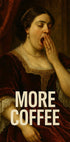 En dramatisk, vintageinspirert plakat av en antikk kvinne som gjesper lengselsfullt etter dagens første kaffe – en leken miks av barokk/renessanse-estetikk og moderne meme-humor. Perfekt blikkfang til kjøkken, stue eller kontor, og en smart gave til kaffeelskere og mandagstrøtte. Gir rommet en museumsvibb og sikrer samtaler rundt kaffekoppen.